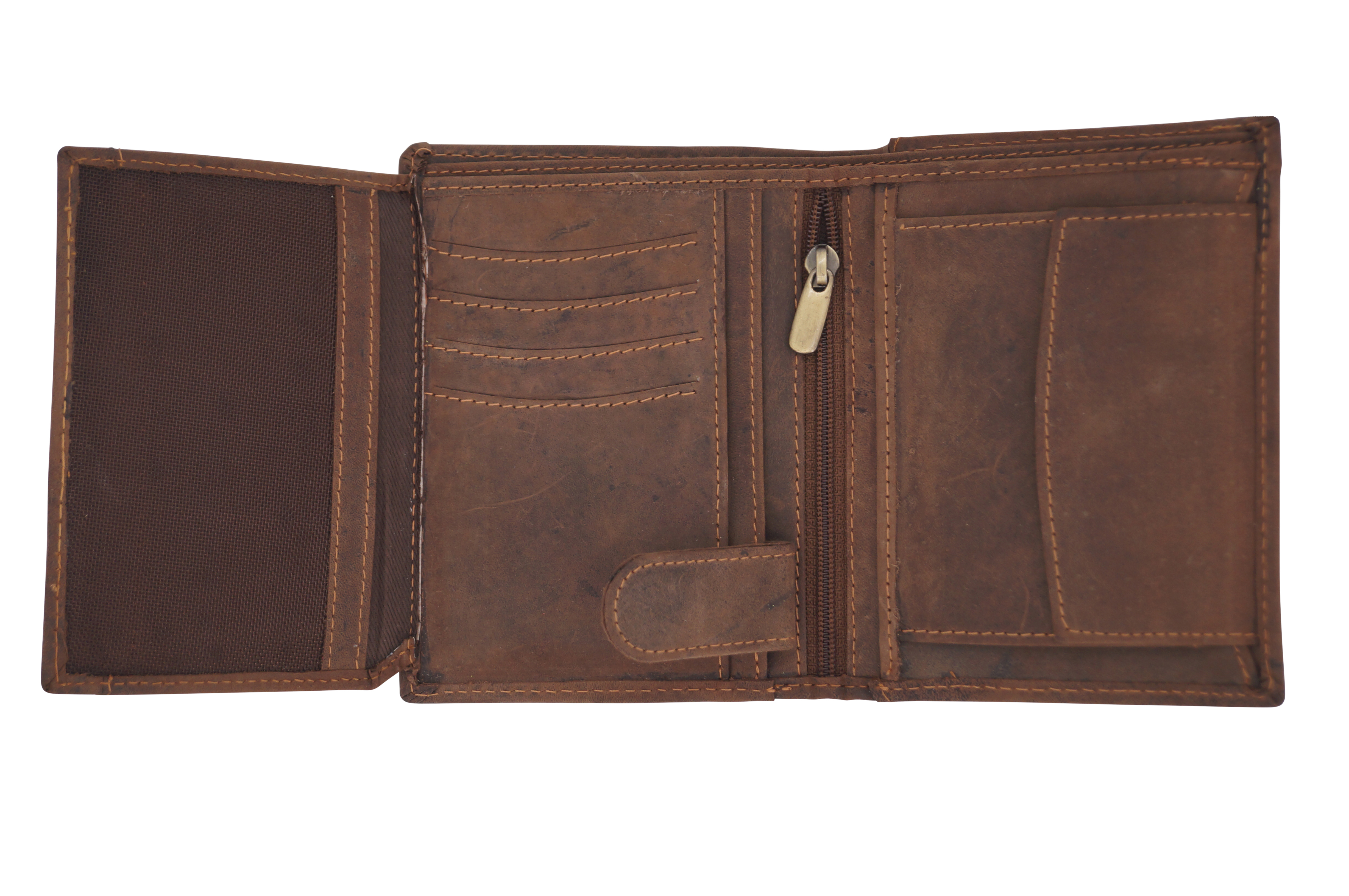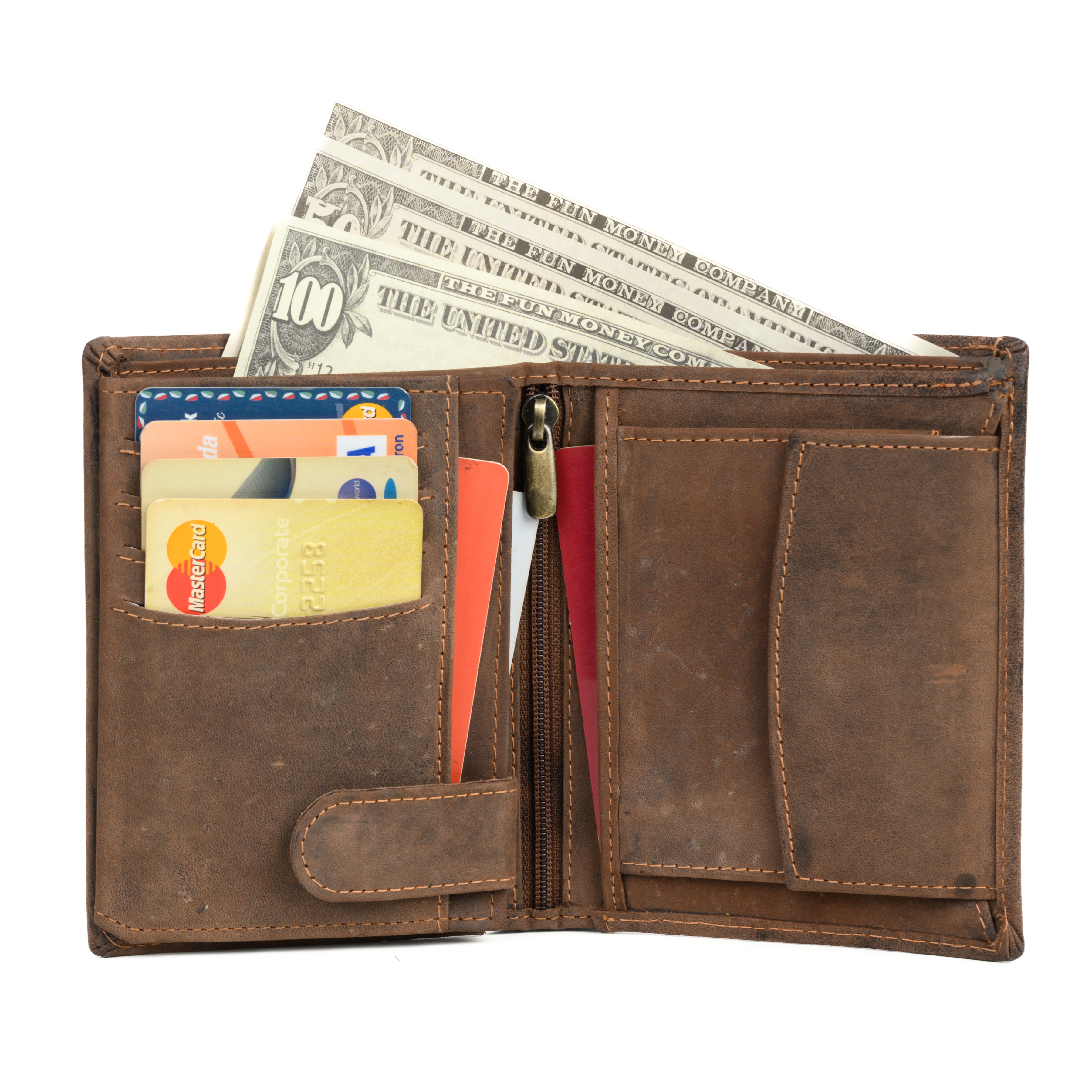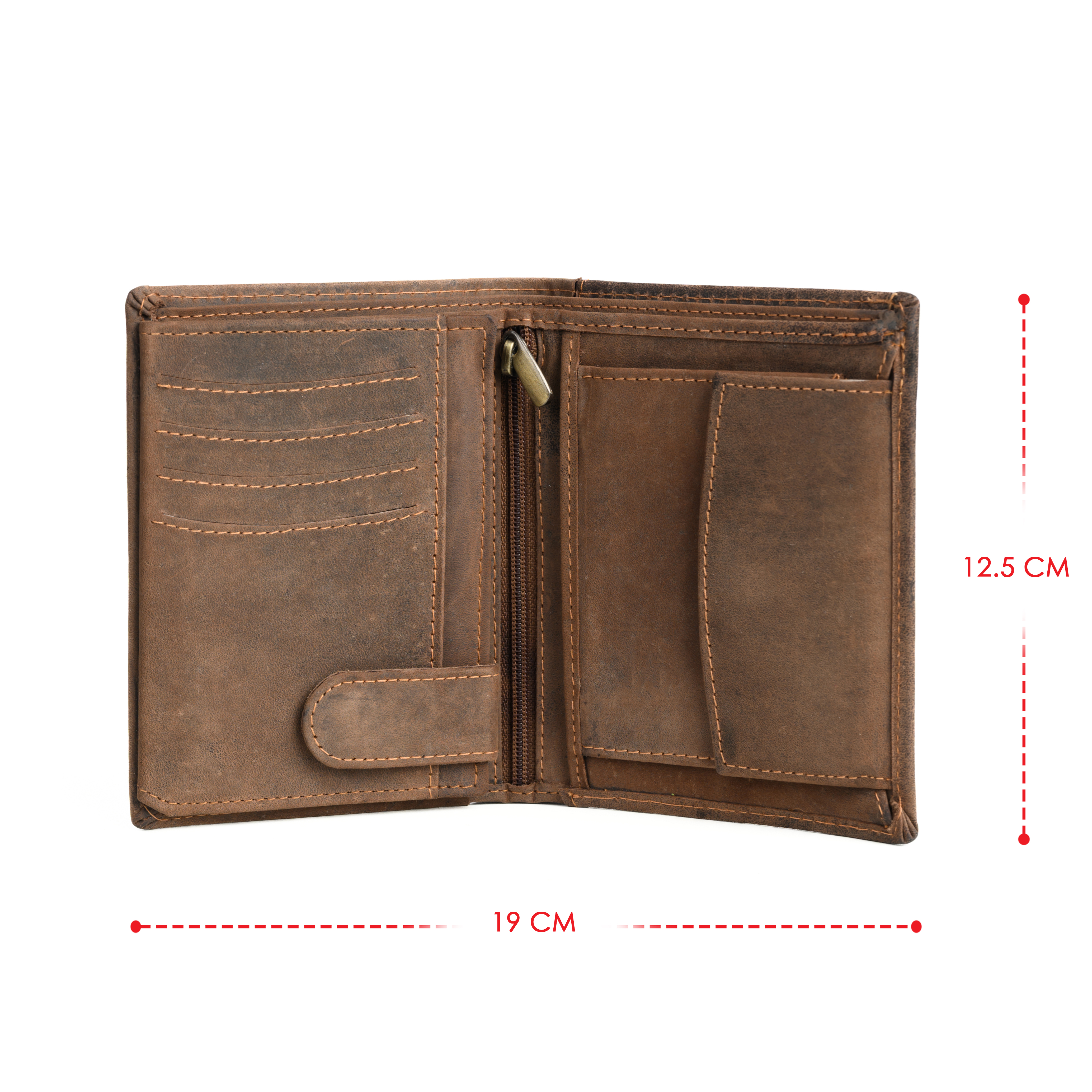 - 2 bill compartments, 1 coin pocket with snap closure