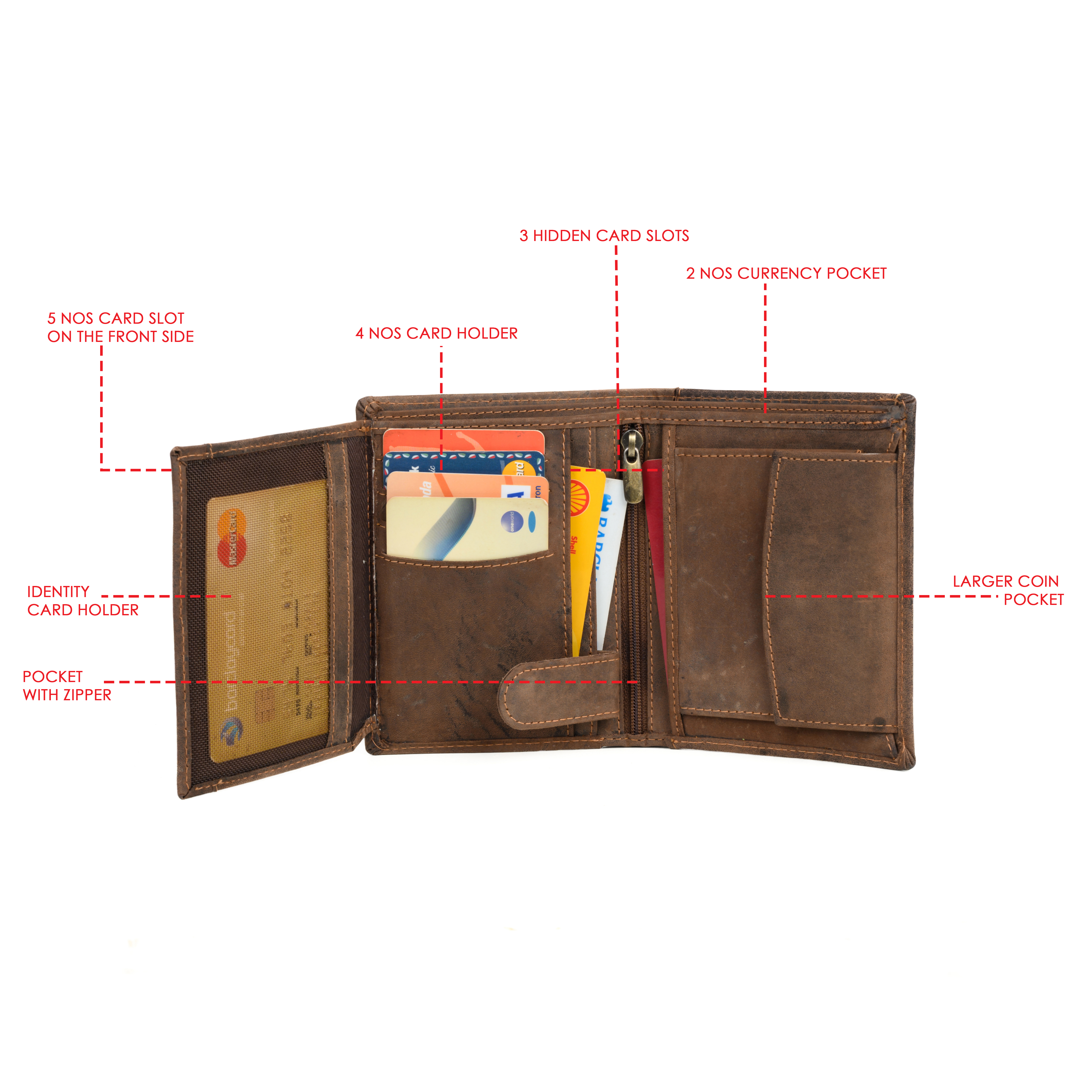 - 8 slots for credit cards, IDs, documents, and loyalty cards