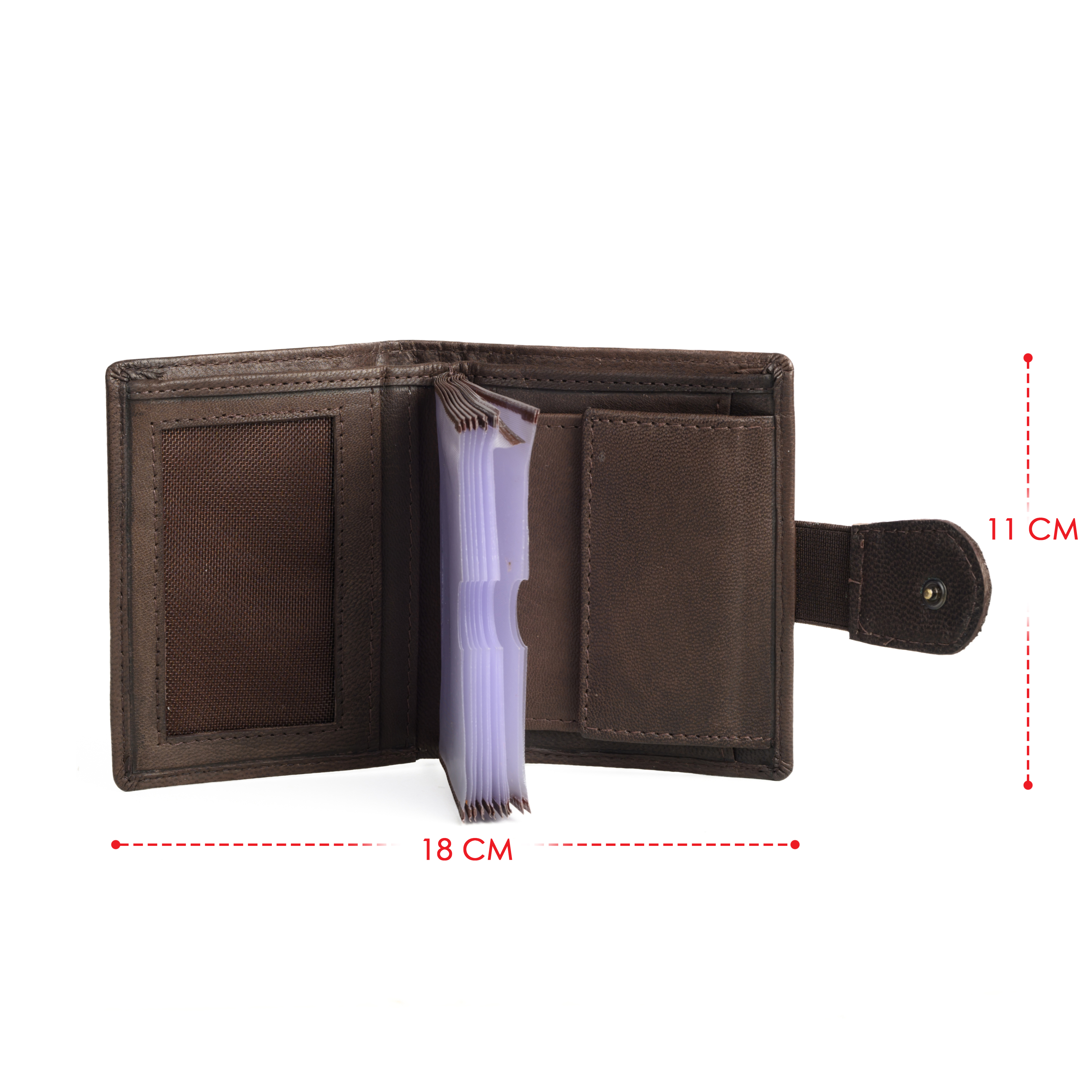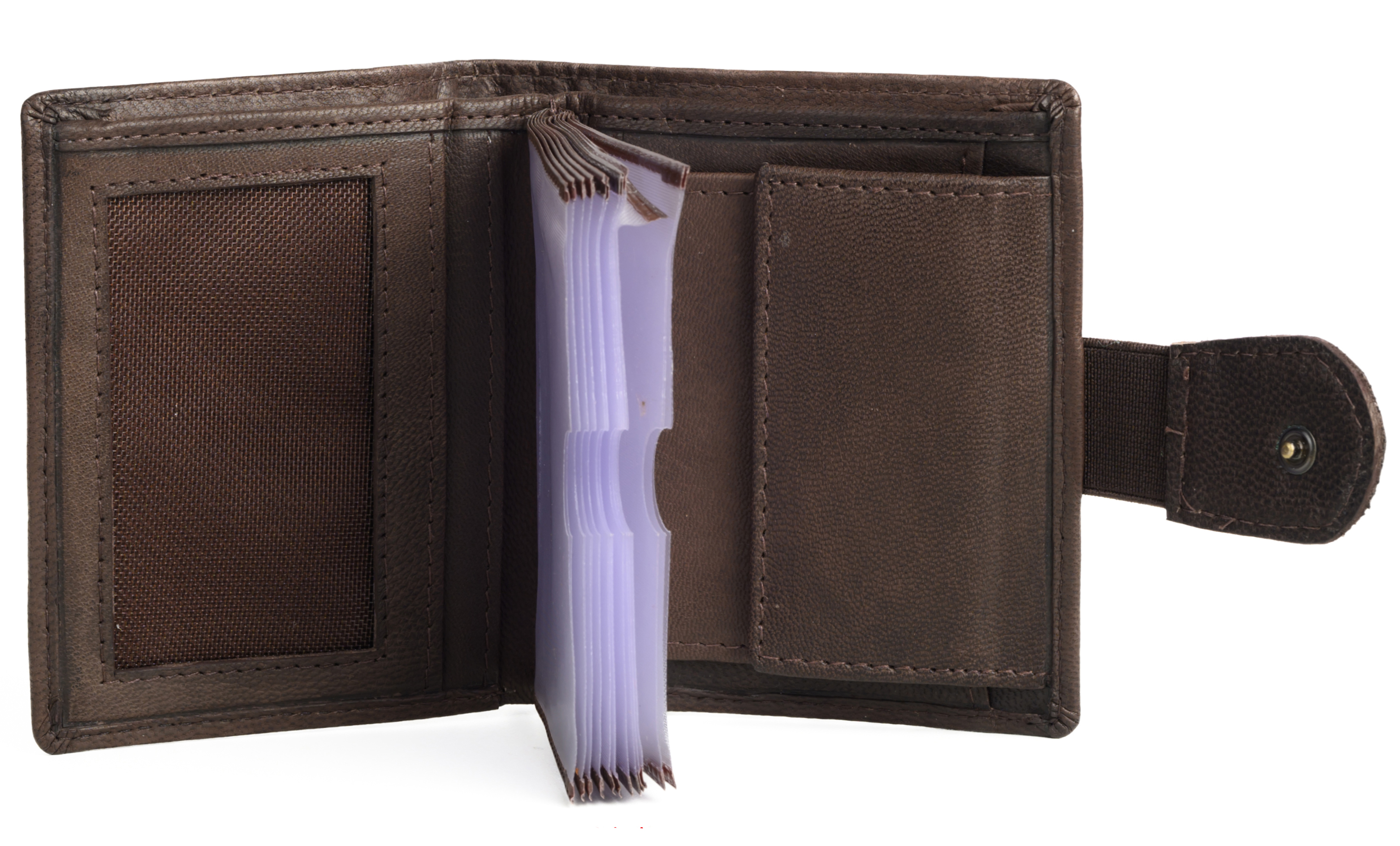 15 compartments for credit cards, ID cards, documents, loyalty cards with a viewing window or mesh panel / 3 of these compartments are on the sides.